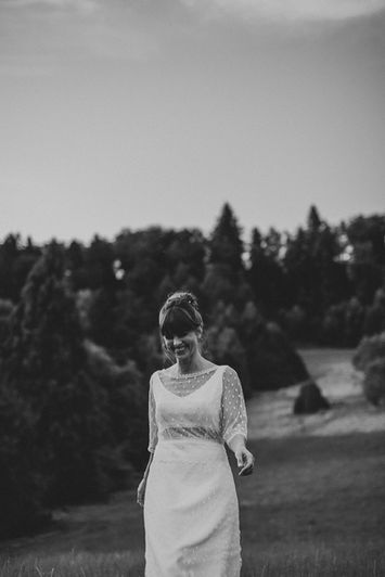 Notre inspiration est venue d’une forêt de séquoias grandioses. Comme un besoin de retour aux sources, une ode à la simplicité. De ces arbres nous nous sommes laissés porter vers une palette de couleurs naturelles et profondes.Notre belle modèle Maria a d’abord porté une robe de la créatrice Elsa Gary. Dans une réponse évidente à notre inspiration, la dentelle reprend le dessin de feuilles et vient jouer en transparence avec la peau. Lauriane a su magnifiquement saisir les instants de pause de cette ambiance tout en douceur et en intensité. Nous avions convenu avec Melody d’une décoration épurée mais typée avec un fauteuil à la personnalité marquée. La mise en beauté réalisée par Natalyia a su parfaitement souligner les teintes abricotée, terracota des arrangement floraux proposés par Marisa. Spécialement pour l’occasion, Laure a imaginé des bijoux tout en géométrie, se mariant parfaitement aux tenues.La Suisse offre tant de lieux préservés que nous avons eu la chance de travailler dans deux lieux pour ce shooting, permettant également une seconde robe Elsa Gary et une nouvelle mise en beauté.Nous nous sommes rendus dans un Arboretum, œuvrant pour la conservation d’arbres et arbustes du monde entier. Cette fois-ci, la robe proposée, hors du temps, allie de grandes arabesques en dentelle de calais à un plumetis tout en laissant deviner la soie délicate. Ce shooting nous a permis de nous découvrir encore un peu plus. Un travail de passionnés pour une invitation à la lenteur et la contemplation